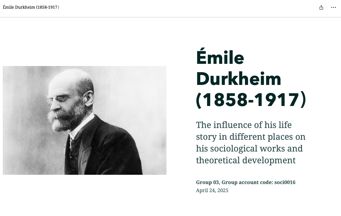 Emile Dukheim was a French sociologist in the late 19th and 20th century (1858-1917), who was the establisher of sociology as an academic discipline. He was also well-known for theories such as functionalism, division of