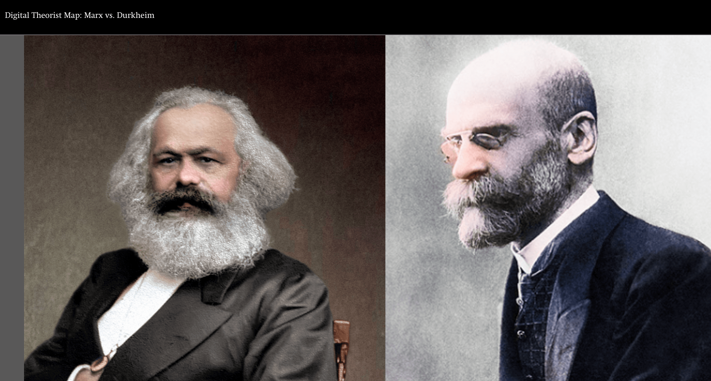 In this Digital Theorist Map, we are going to compare the works of Karl Marx and Emile Durkheim to show the sociologist theory views similarity and differences. The reason why choosing Marx and Durkheim to